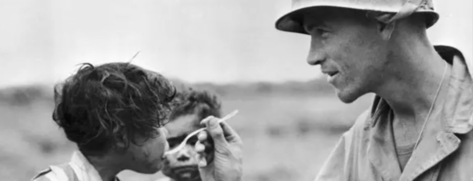But look at this soldier’s face, as he shares his food with a hungry Japanese child.